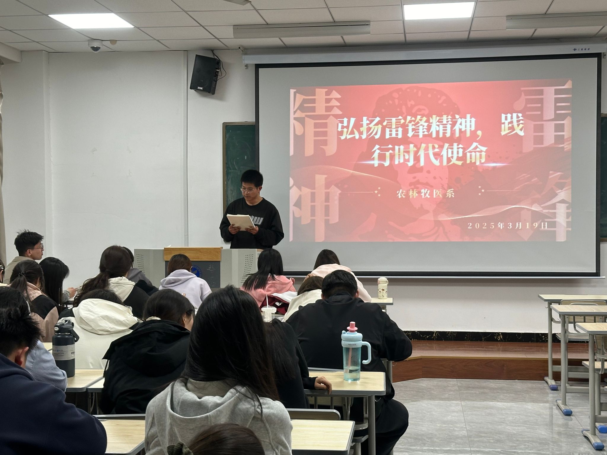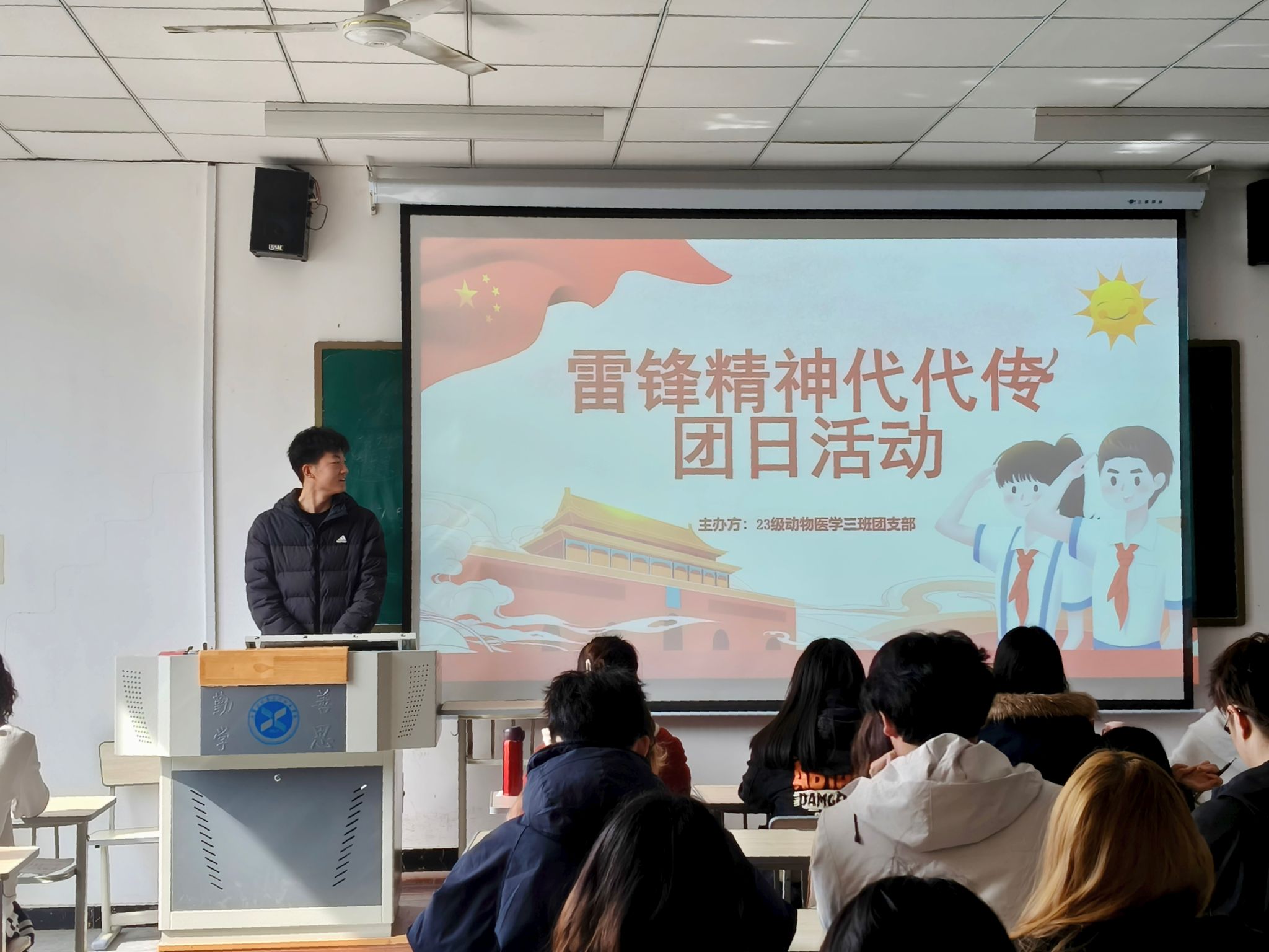 开展“雷锋精神代代传”主题团日活动。3月4日—6日,农林牧医系团总支各团支部分别开展了 “雷锋精神代代传” 主题团日活动,引导青年团员深刻领悟雷锋精神,激发他们在新时代的奉献热情与社会责任感,培养青年学子要将雷锋精神内化于心、外化于行,在今后的学习与生活中,时刻以雷锋为榜样,从自身做起,从身边小事做起,用实际行动传递正能量。