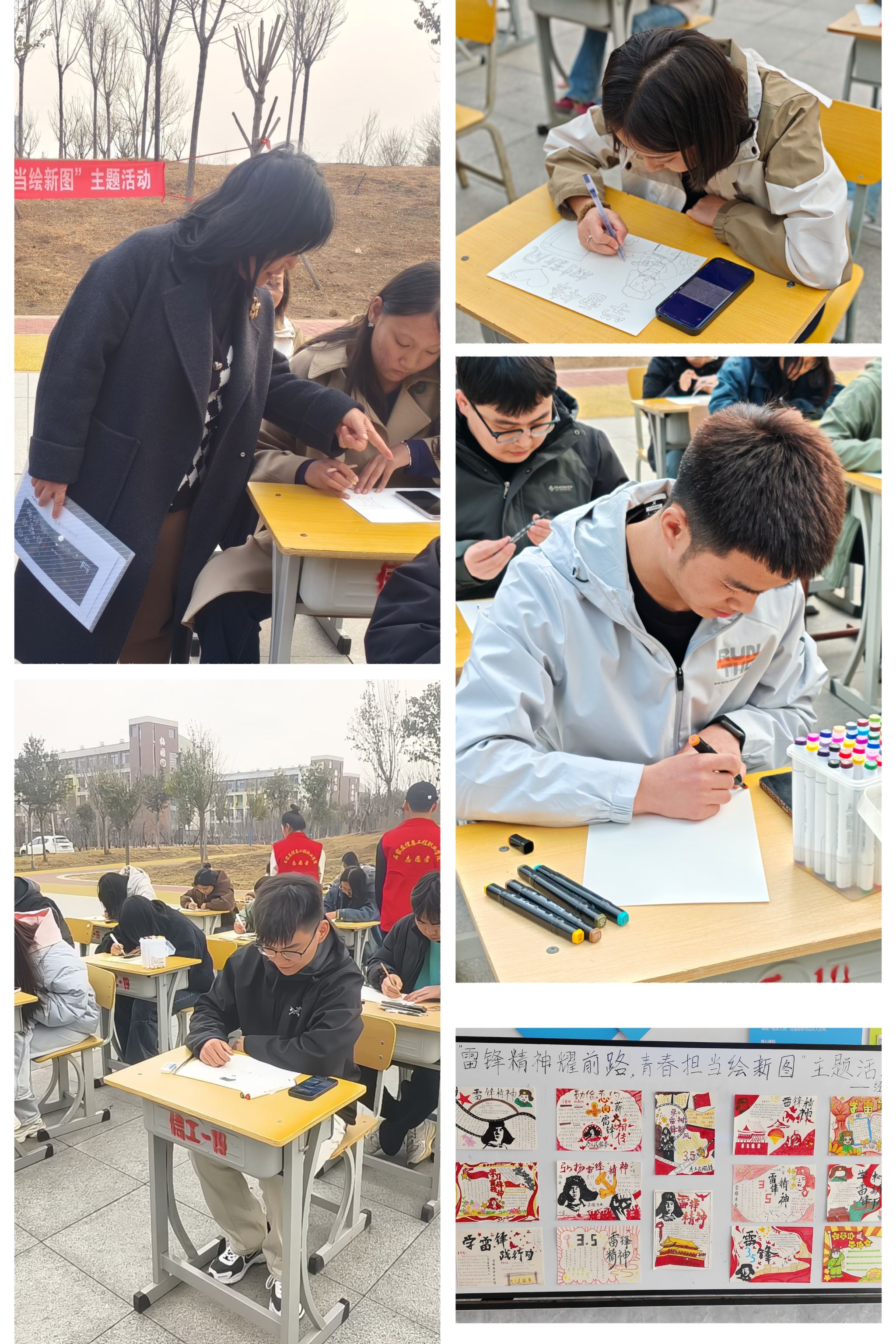 举办“弘扬时代新风 传承榜样力量”手抄报活动。3月5日,经济贸易系以雷锋事迹、精神解读、身边榜样为核心内容开展现场手绘手抄报活动,鼓励学生通过手工创作传递正能量。活动期间,同学们以8K画纸为舞台,用画笔和文字诠释雷锋精神。从雷锋生平事迹到身边的暖心故事,从经典语录到创意插画,一幅幅作品主题鲜明、色彩缤纷,展现了新时代青年对“奉献、友爱、互助、进步”的深刻理解。本次手抄报不仅色彩鲜艳、内容丰富,更展现出同学们对雷锋精神的深刻理解和对真善美的追求。