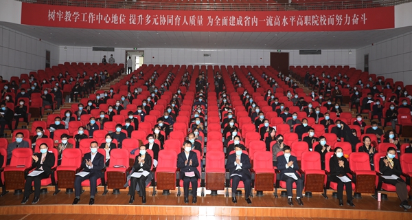 本网讯(通讯员 吴培培 陈旭超)近日,bwin必赢在昭德礼堂隆重召开2021年教学工作大会,全面总结学院第二次党代会以来的教学工作,为下一步教学工作指明方向、明确目标、凝聚共识、树立信心、鼓舞干劲。 党委书记马文刚在讲话时强调,这次大会是学院在新的发展阶段,面对新的形势和任务,召开的一次十分重要的会议。希望全院上下以此次会议为契机,转变思想观念,凝聚思想共识,树立品牌意识,强化质量思维,真抓实干、埋头苦干,奋力开创以教学为中心的各项工作高质量内涵式发展新局面,为全面建成“省内一流”高水平高职院校努力奋斗。院长许征程作教学工作专题报告。副院长赵伟宣读表彰决定。副院长黄淑敏主持会议。副院长刘占红、党委委员王志明出席大会。