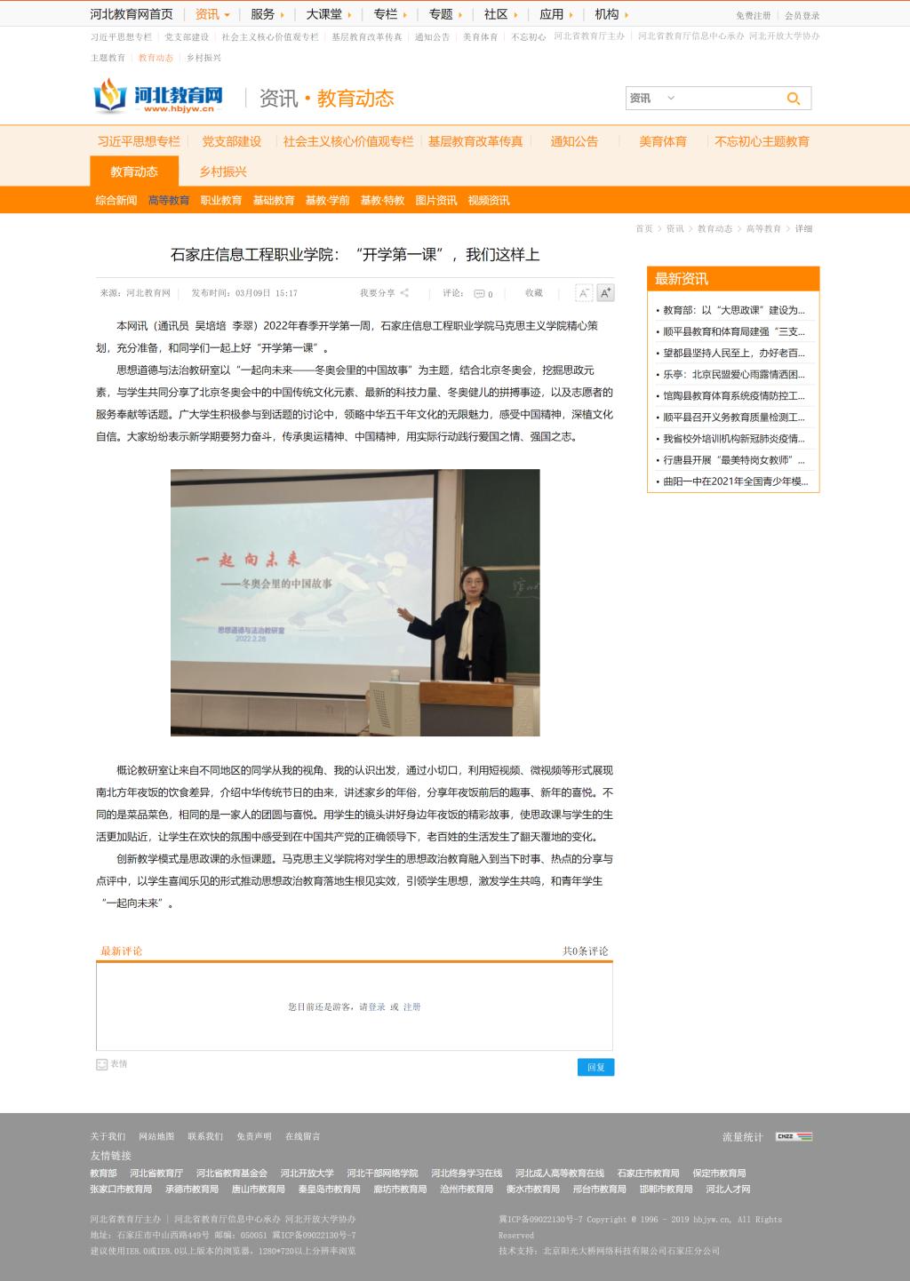 思想道德与法治教研室以“一起向未来——冬奥会里的中国故事”为主题,结合北京冬奥会,挖掘思政元素,与学生共同分享了北京冬奥会中的中国传统文化元素、最新的科技力量、冬奥健儿的拼搏事迹,以及志愿者的服务奉献等话题。广大学生积极参与到话题的讨论中,领略中华五千年文化的无限魅力,感受中国精神,深植文化自信。大家纷纷表示新学期要努力奋斗,传承奥运精神、中国精神,用实际行动践行爱国之情、强国之志。