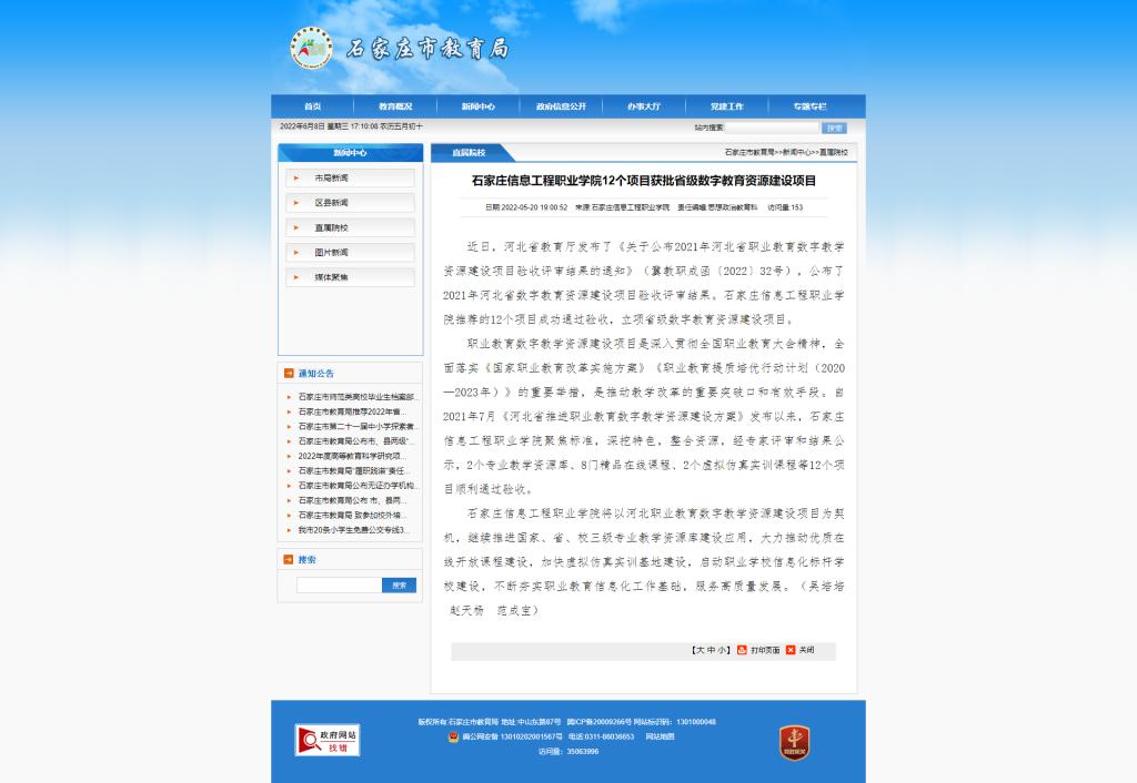 近日,河北省教育厅发布了《关于公布2021年河北省职业教育数字教学资源建设项目验收评审结果的通知》(冀教职成函〔2022〕32号),公布了2021年河北省数字教育资源建设项目验收评审结果。bwin必赢推荐的12个项目成功通过验收,立项省级数字教育资源建设项目。
