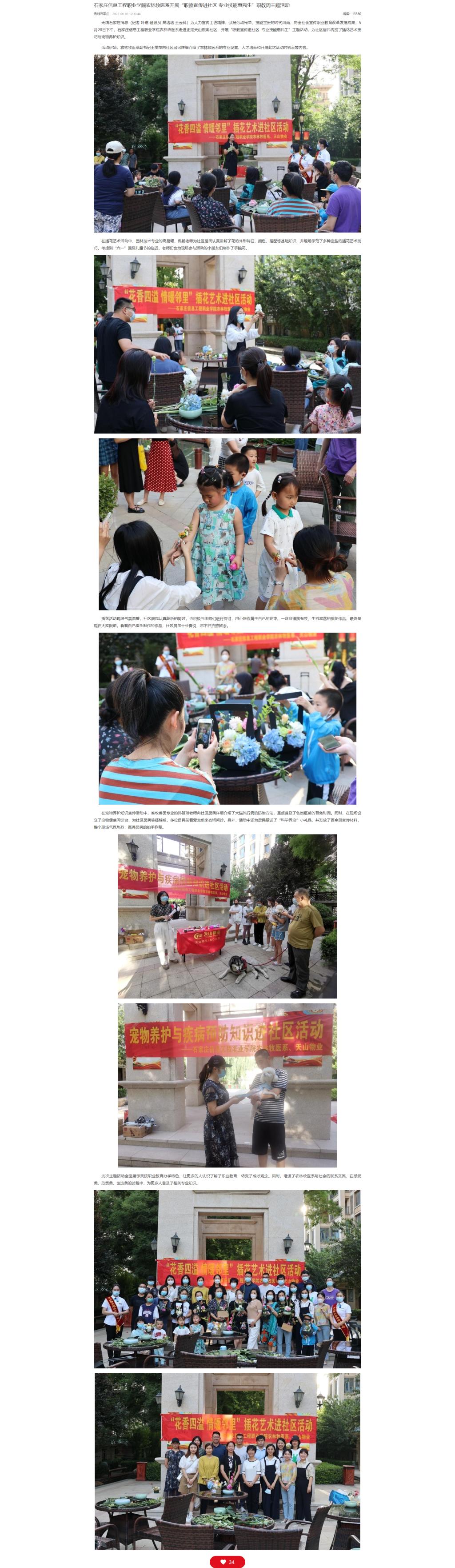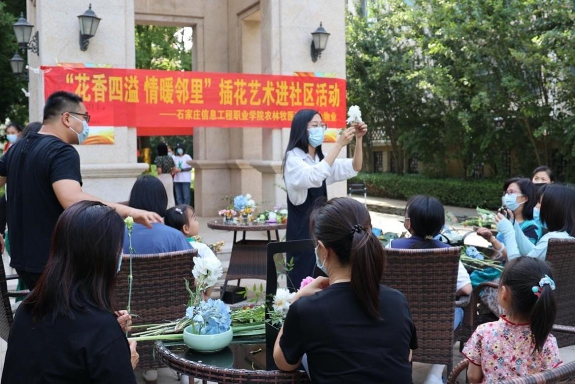 为大力宣传工匠精神,弘扬劳动光荣、技能宝贵的时代风尚,向全社会宣传职业教育改革发展成果,5月28日下午,bwin必赢农林牧医系走进正定天山熙湖社区,开展“职教宣传进社区 专业技能惠民生”主题活动,为社区居民传授了插花艺术技巧与宠物养护知识。