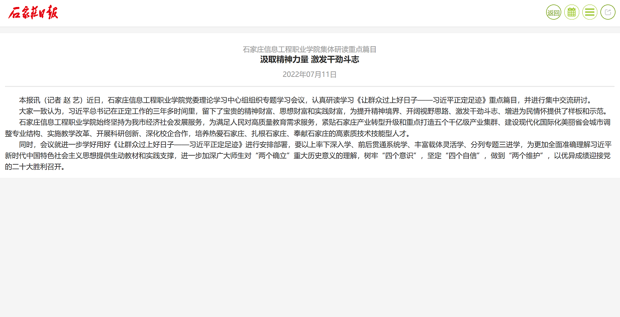 原文链接:石家庄信息工程职业学院集体研读重点篇目