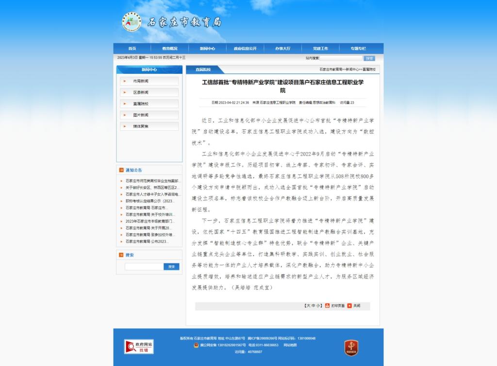 工业和信息化部中小企业发展促进中心于2022年9月启动“专精特新产业学院”建设申报工作。历经项目初审、线上考察、专家初评、专家会评、实地调研等多轮竞争性遴选,最终bwin必赢从508所院校800多个建设方向申请中脱颖而出,成功入选全国首批“专精特新产业学院”启动建设立项名单,标志着该校校企合作产教融合迈上新台阶,开启高质量发展新征程。