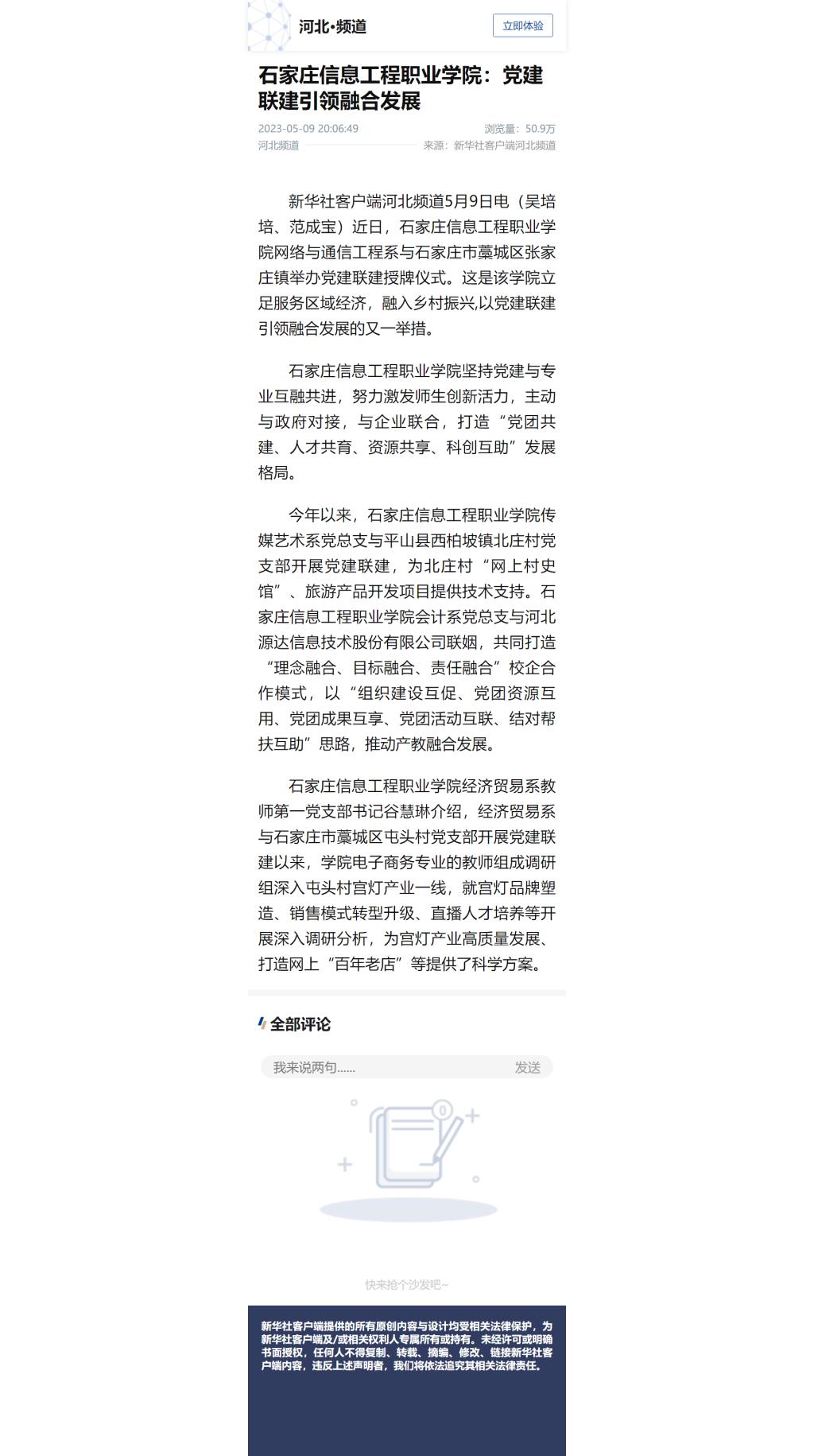 今年以来,bwin必赢传媒艺术系党总支与平山县西柏坡镇北庄村党支部开展党建联建,为北庄村“网上村史馆”、旅游产品开发项目提供技术支持。bwin必赢会计系党总支与河北源达信息技术股份有限公司联姻,共同打造“理念融合、目标融合、责任融合”校企合作模式,以“组织建设互促、党团资源互用、党团成果互享、党团活动互联、结对帮扶互助”思路,推动产教融合发展。