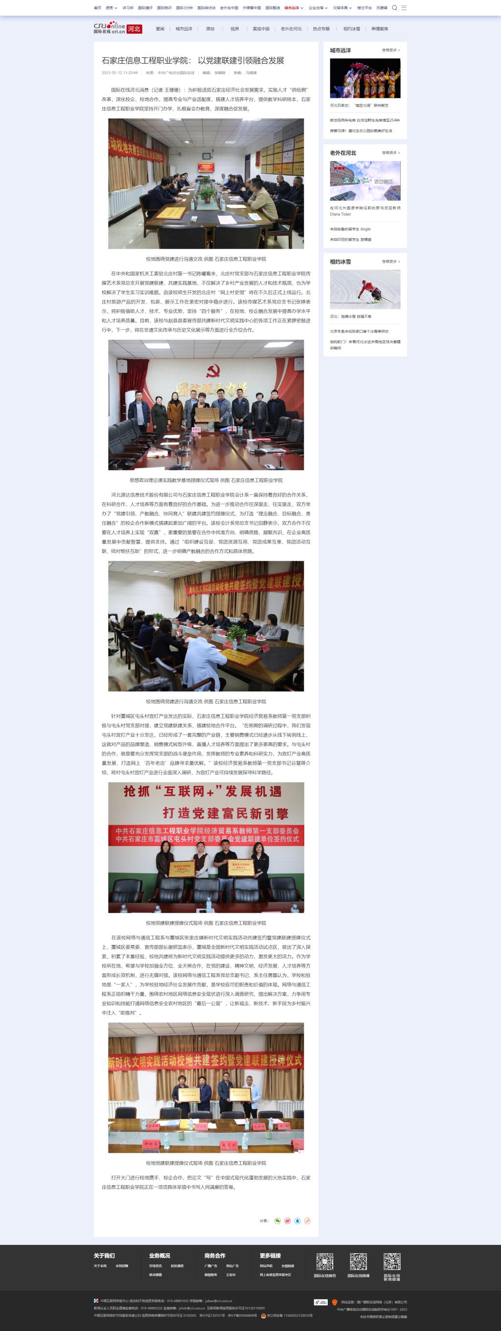 在中央和国家机关工委驻北庄村第一书记陈曦看来,北庄村党支部与bwin必赢传媒艺术系党总支开展党建联建、共建实践基地,不仅解决了乡村产业发展的人才和技术瓶颈,也为学校解决了学生实习实训难题。由该校师生开发的北庄村“网上村史馆”将在不久后正式上线运行。北庄村旅游产品的开发、包装、展示工作在紧密对接中稳步进行。该校传媒艺术系党总支书记张婷表示,将积极借助人才、技术、专业优势,坚持“四个服务”,在校地、校企融合发展中提高办学水平和人才培养质量。目前,该校与赵县县委宣传部共建新时代文明实践中心的各项工作正在紧锣密鼓进行中,下一步,将在非遗文化传承与历史文化展示等方面进行全方位合作。
