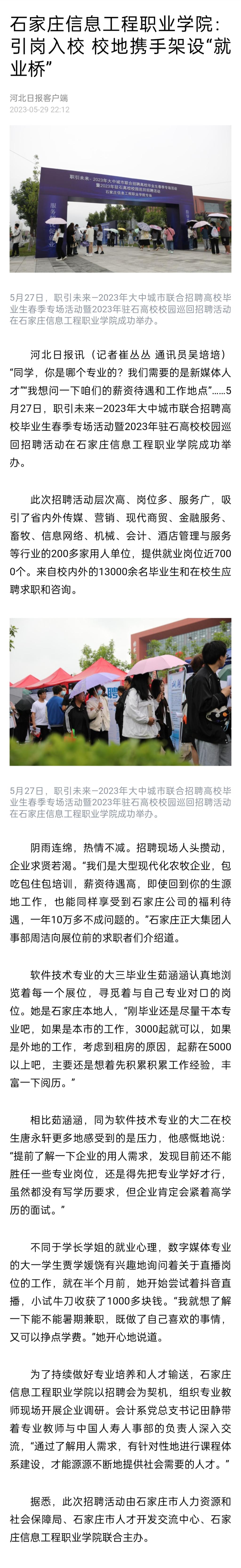 5月27日,职引未来—2023年大中城市联合招聘高校毕业生春季专场活动暨2023年驻石高校校园巡回招聘活动在bwin必赢成功举办。