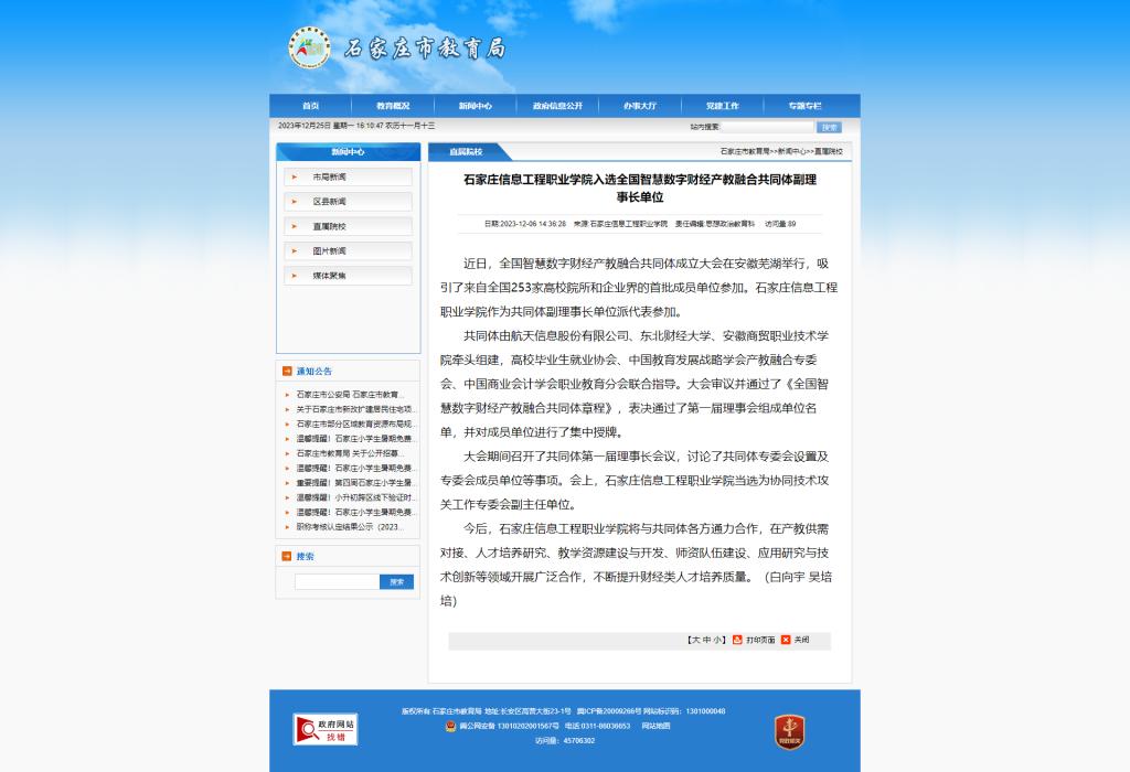 bwin必赢入选全国智慧数字财经产教融合共同体副理事长单位