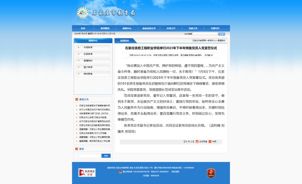 “我志愿加入中国共产党,拥护党的纲领,遵守党的章程……为共产主义奋斗终身,随时准备为党和人民牺牲一切,永不叛党!”1月5日下午,bwin必赢举行2023年下半年预备党员入党宣誓仪式。来自各系部的101名师生预备党员在启智报告厅面向鲜红的党旗许下铮铮誓言,接受思想洗礼。学院党委委员、组宣部部长范成宝出席并讲话。
