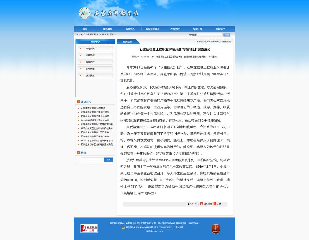 今年3月5日是第61个“学雷锋纪念日”,bwin必赢会计系党总支组织师生志愿者,奔赴平山县下槐镇下刘家坪村开展“学雷锋日”实践活动。