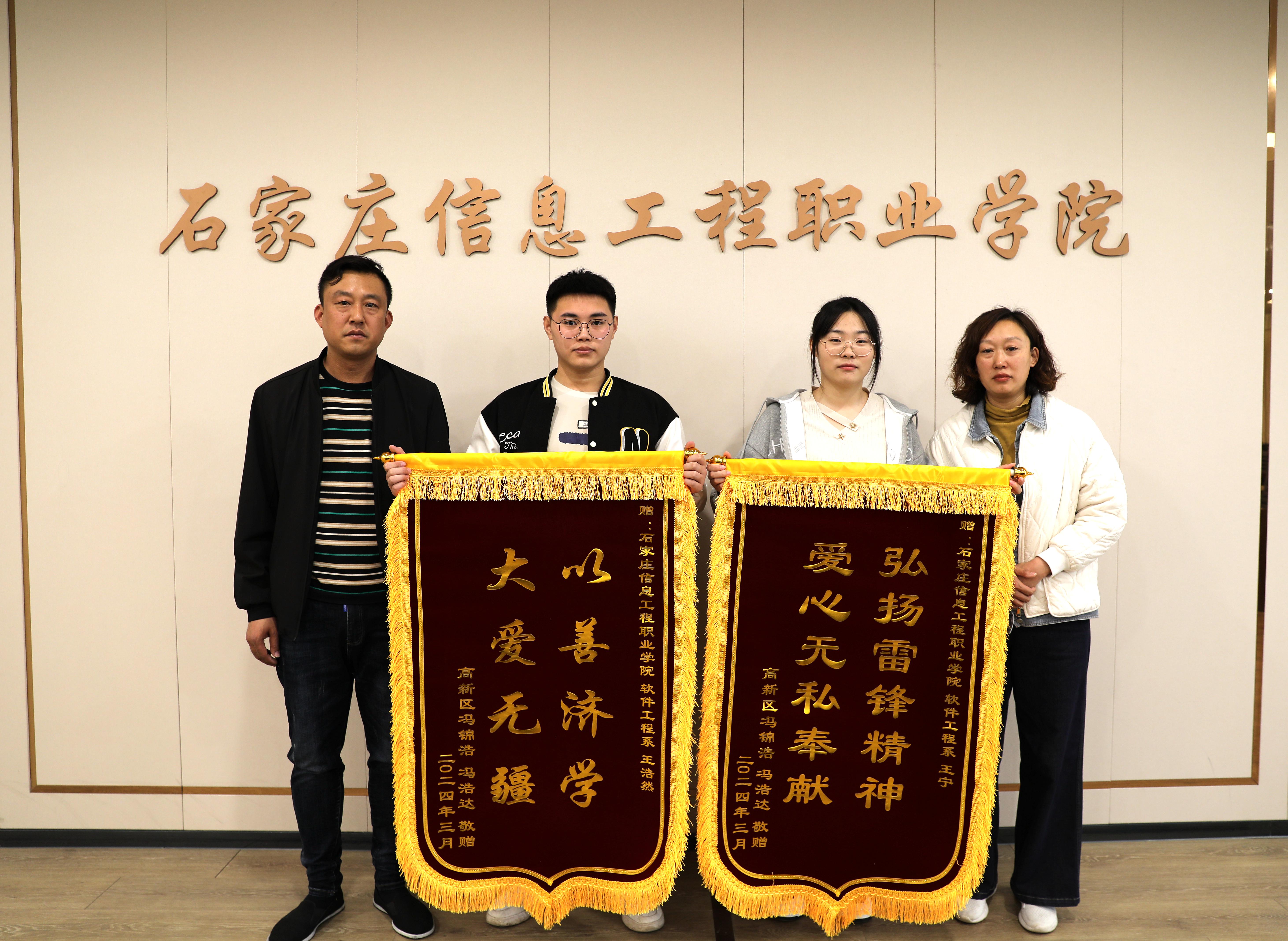 3月27日上午,石家庄市民韩女士来到bwin必赢向软件工程系王宁、王浩然两名同学致谢,感谢危难之时的暖心救助。