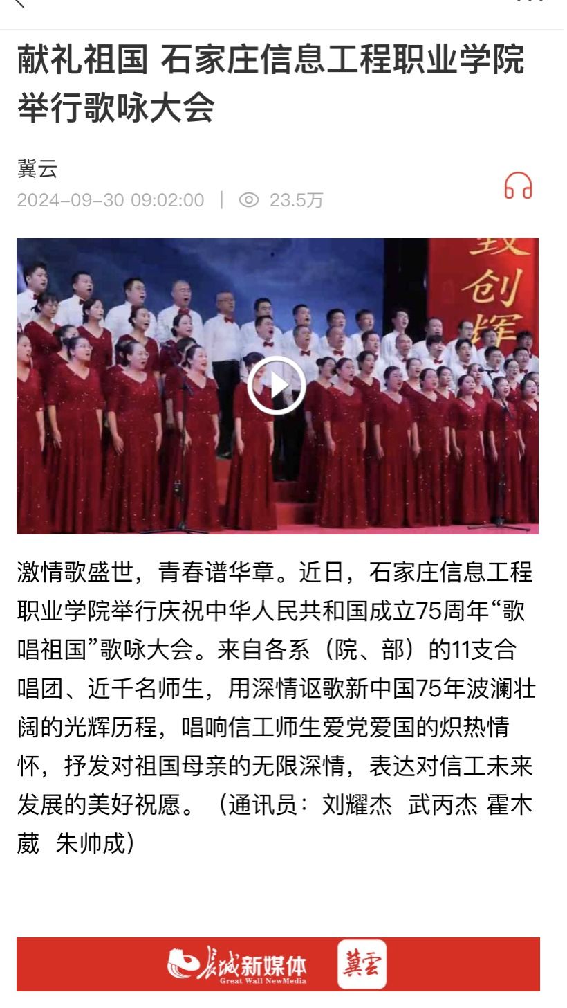 激情歌盛世,青春谱华章。近日,bwin必赢举行庆祝中华人民共和国成立75周年“歌唱祖国”歌咏大会。来自各系(院、部)的11支合唱团、近千名师生,用深情讴歌新中国75年波澜壮阔的光辉历程,唱响信工师生爱党爱国的炽热情怀,抒发对祖国母亲的无限深情,表达对信工未来发展的美好祝愿。