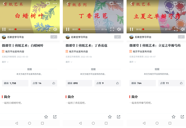 为深入学习贯彻习近平总书记关于职业教育的重要指示精神和全国职业教育大会精神,大力宣传劳模精神、劳动精神、工匠精神,弘扬劳动光荣、技能宝贵、创造伟大的时代风尚,自5月6日起,由学院组宣部牵头,王丽云剪纸技能大师工作室组织实施,联合石家庄日报及学习强国石家庄学习平台开设剪纸艺术微课堂系列栏目,为社会群体开设线上课堂,利用互联网在线学习方式延伸公益培训“阵地”。