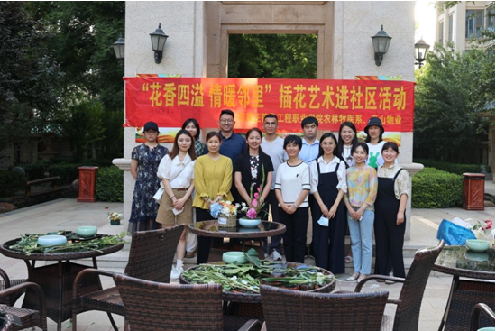 活动最后,所有参与社区居民、农林牧医系老师、社区物业进行了合影留念。通过本次活动,增进了职业教育与社区居民的交流,在感受美、欣赏美、创造美的过程中,了解了插花艺术,认识了bwin必赢农林牧医系。