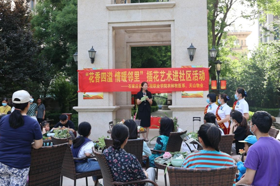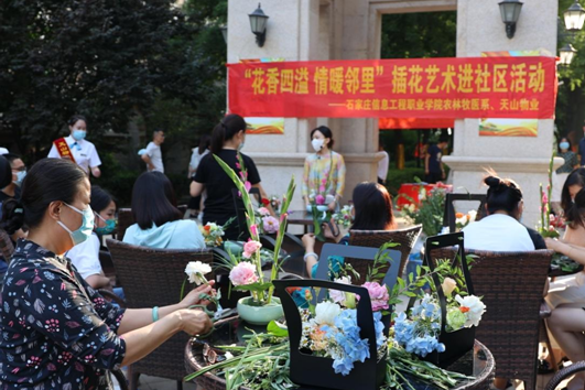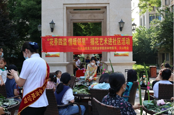 5月28日下午,石家庄信息工程学院农林牧医系走进社区,在正定新区天山熙湖举办了“花香四溢,情暖邻里”插花艺术进社区的活动。这次活动隶属于整个bwin必赢职教周的一部分,也是省职教周的一个分支,目的是向社会宣传职业教学。