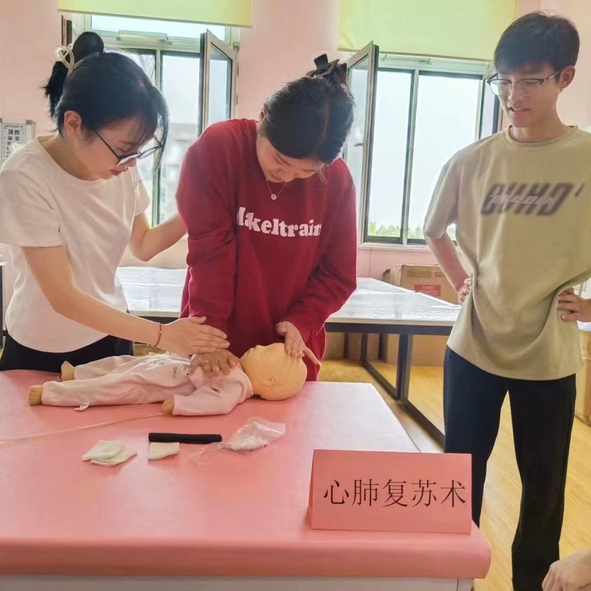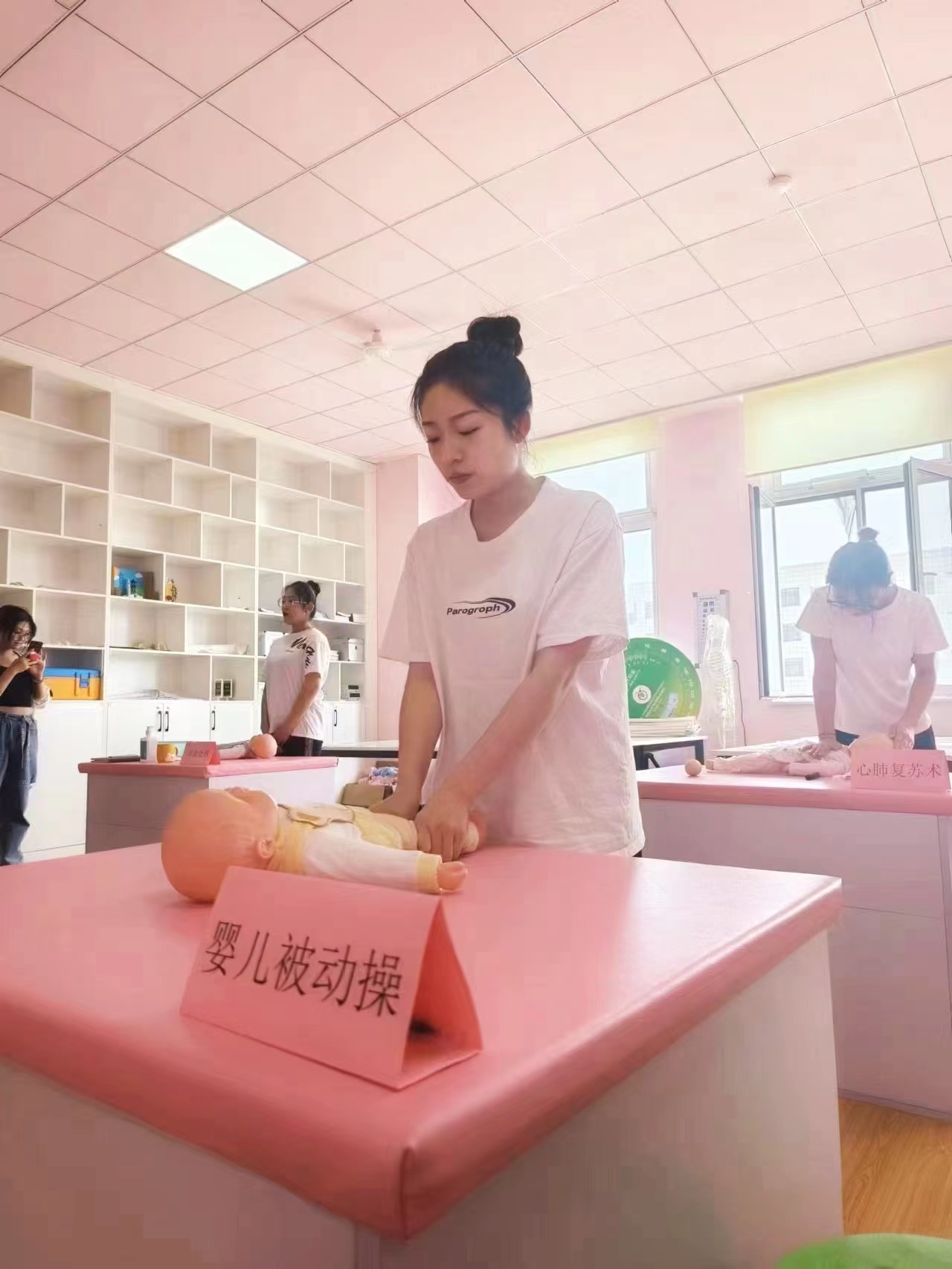 本次活动于2023年5月18日下午在我院知新1号楼236教室(西)——婴幼儿保育实训室举办,诚邀学院老师、22级婴幼儿托育与服务管理专业及其他各专业在校学生参与活动。活动由王乐、杨松涛老师进行实操指导,来自21级婴幼儿托育与服务管理专业的学生张子涵、王伊、赵佳乐、徐子茗、吴英迪、许嘉琪同学为前来学习体验的老师和同学们在操作台上分别展示了更换纸尿裤、婴儿抚触、婴幼儿心肺复苏术、婴儿被动操、婴儿包被、婴幼儿误食处理这六项婴幼儿保健与照护技能。