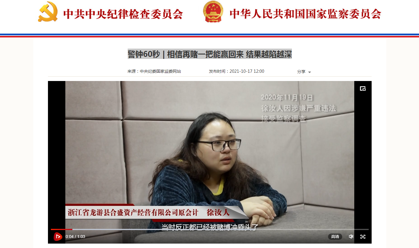 观看地址:http://v.ccdi.gov.cn/2021/10/15/VIDE7VRMN6bpQUcIcQhQxUU5211015.shtml