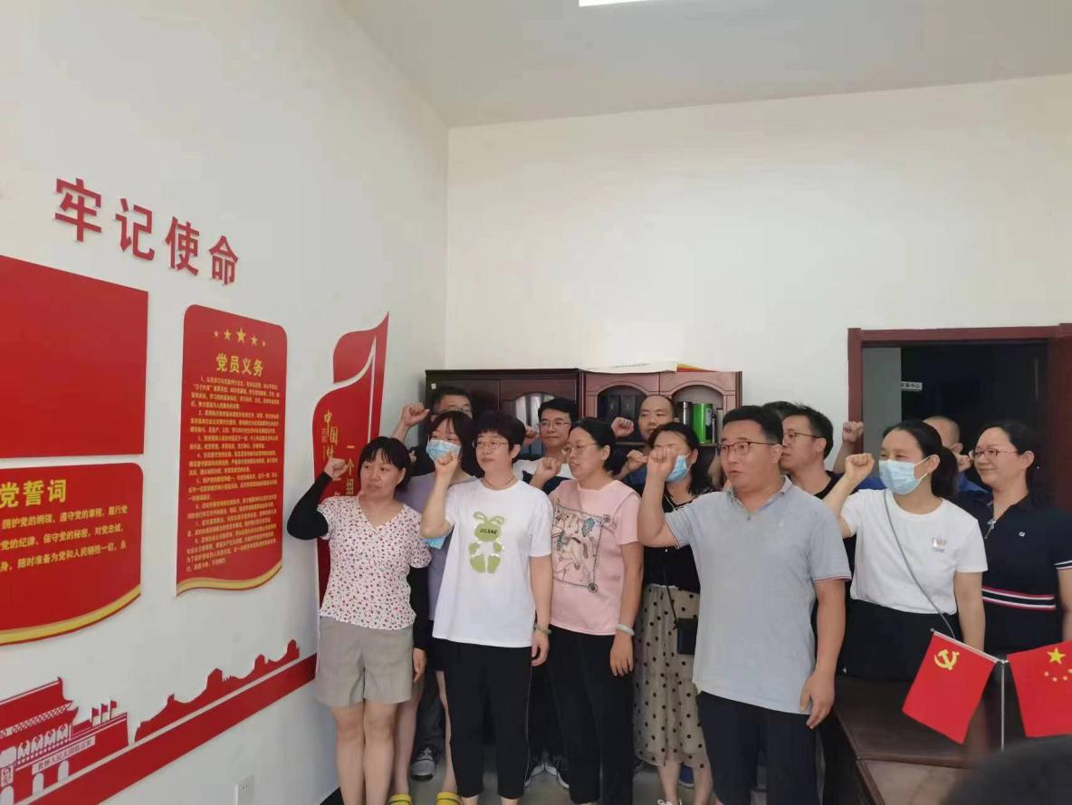 教辅第二党支部党员在党旗下重温入党誓词,郑重宣誓。