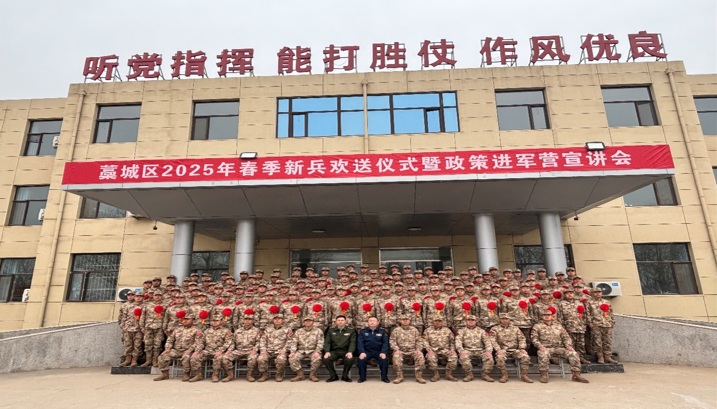 3月14日上午,石家庄市藁城区2025年上半年入伍新兵欢送仪式在雄壮的国歌声中庄严启幕。100名热血青年身着崭新戎装、肩披“光荣入伍”绶带,以挺拔军姿列队集结,昂首踏上从军报国的光荣征程。藁城区委常委、人武部政委,区政府领导,退役军人事务局负责人,各乡镇及高校武装部代表,以及新兵家长共同见证了这一荣耀时刻,为即将奔赴军营的子弟兵送上深情嘱托。仪式现场:热血誓言铭初心 家国情怀两相系