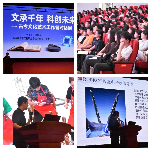 讲座的“科创未来”部分,以锣钹科技(Robkoo)推出的智能电子吹管为例,详解了现代音乐科技产品如何通过软硬件结合实现“一套指法,演奏二十种乐器”,以及“零门槛入门”的人性化设计理念,展示了科技在音乐普及与教育中的巨大潜力。